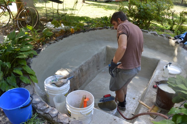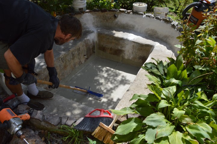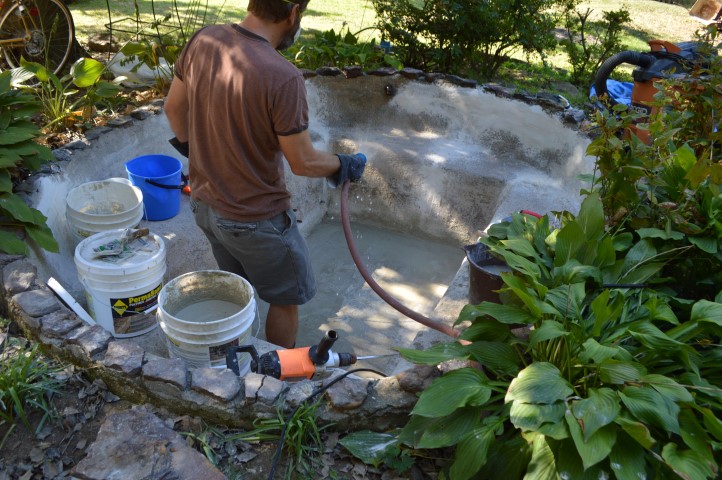 Restoring a Concrete Pond :: Repairing Cracks, Parging and Sealing with Epoxy
